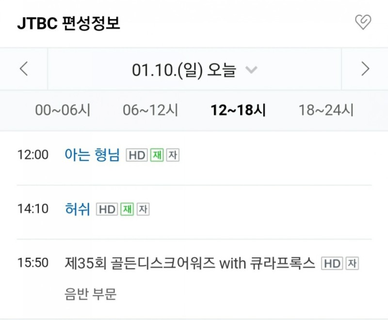 아래 jtbc 편성표 내용을 참조해서 보고 싶은 프로그램이 있으면하는 몇 시에 방송이 기인하는지 미리 확인해 보시기 희망합니다.