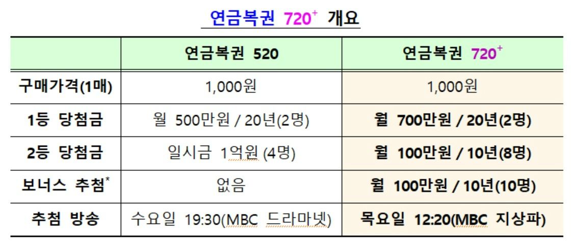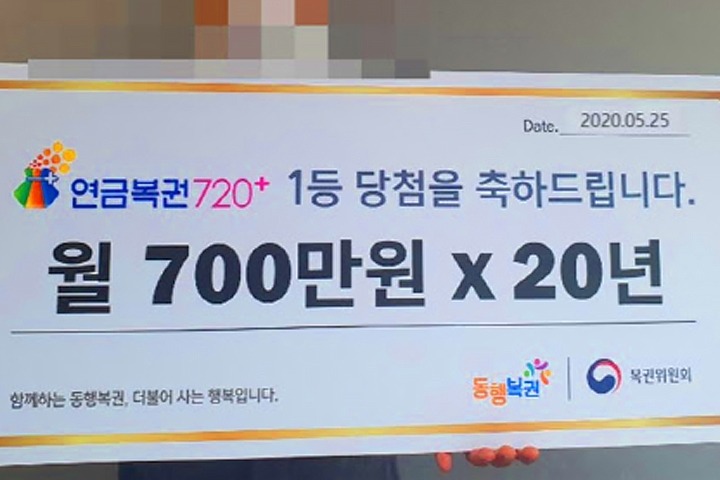 1등 : 월 700만원(세후 실수령 546만 원) 20년간 지급/2명